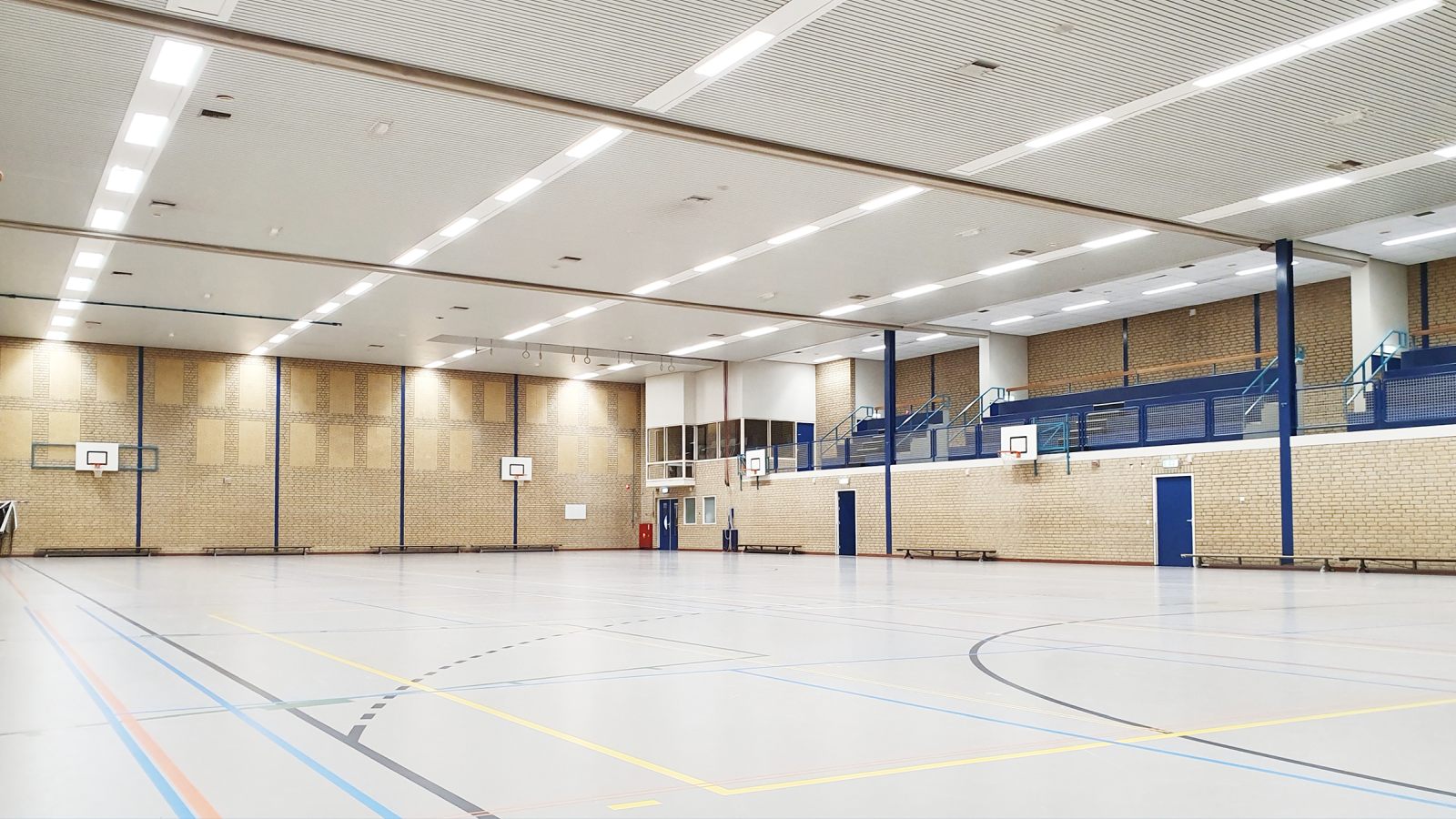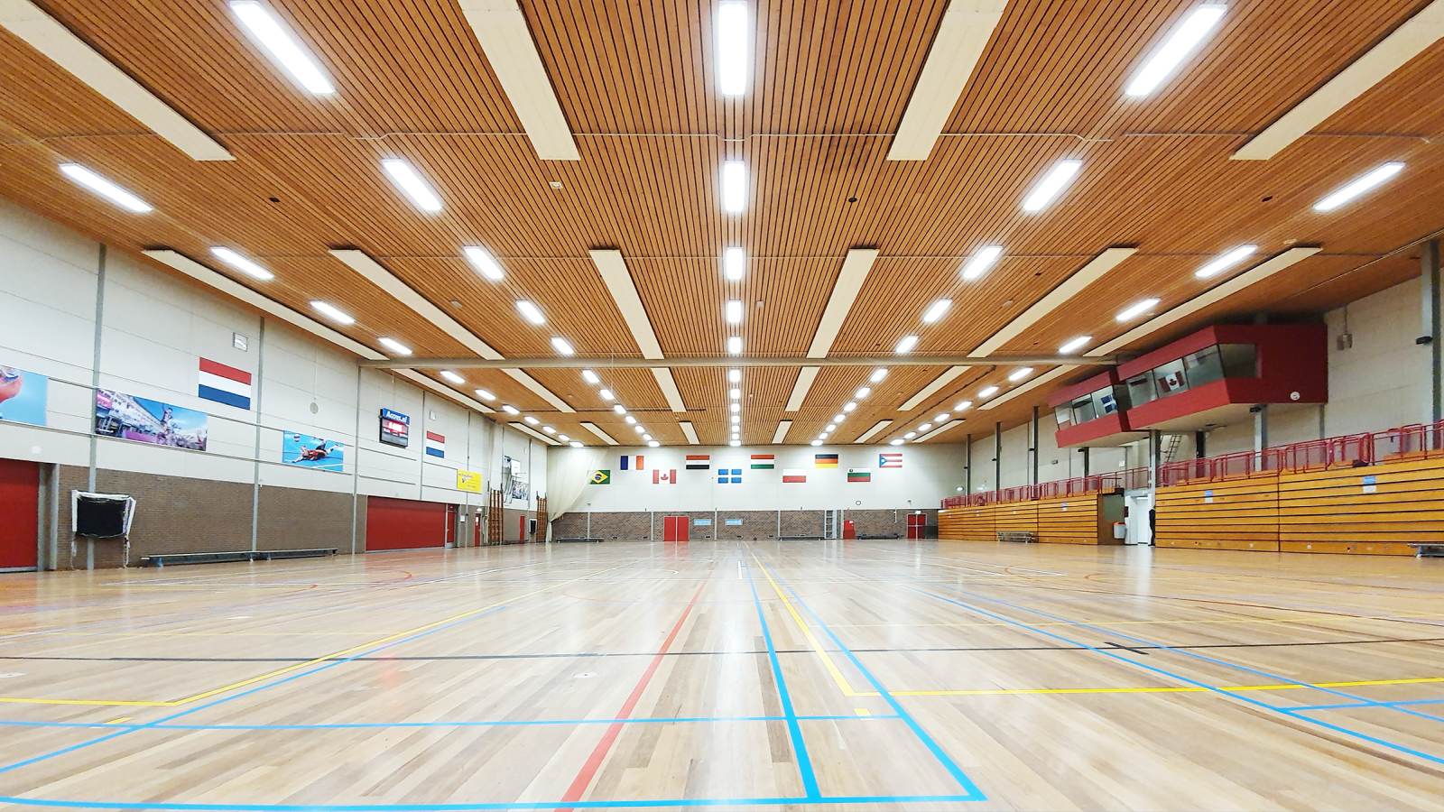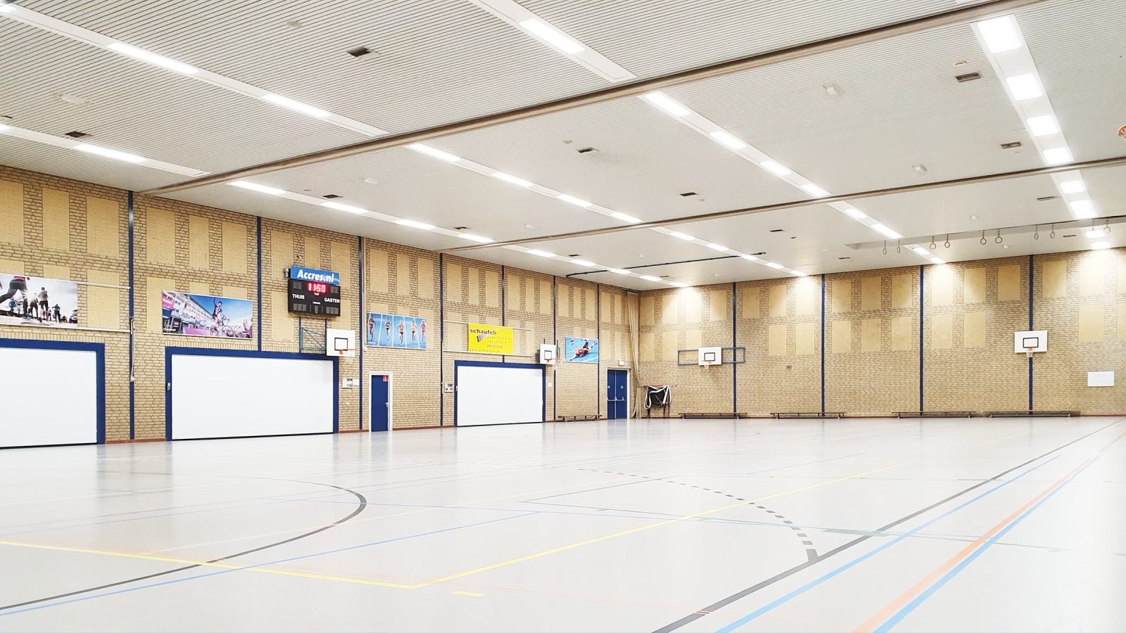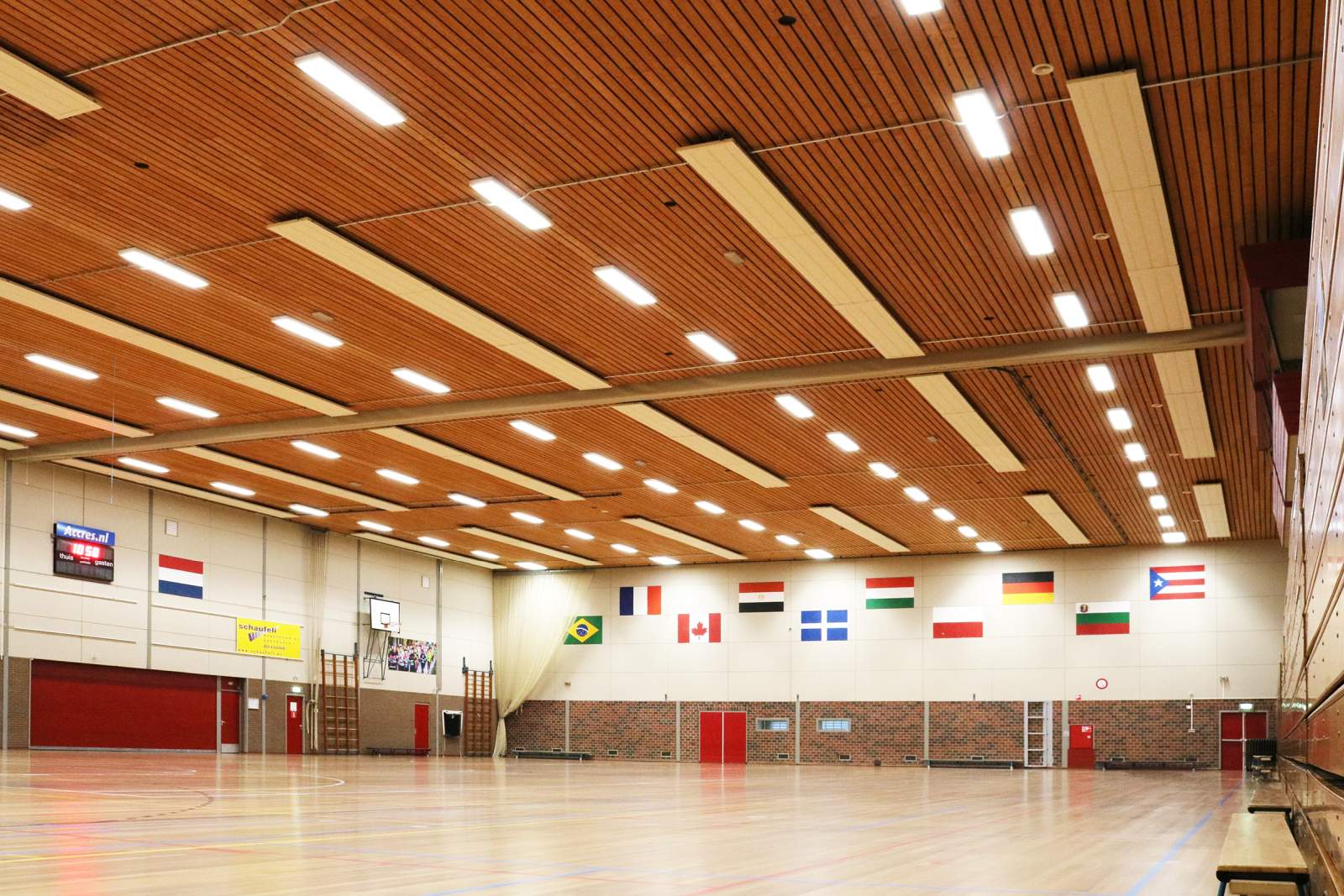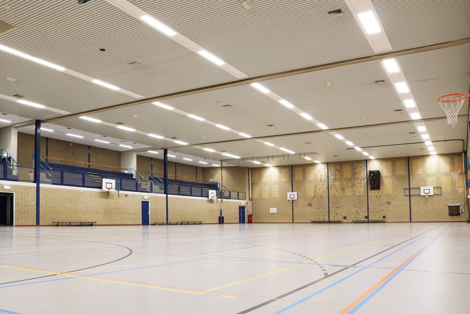 In de sporthal ‘Matenpark’ is gekozen voor nieuwe verlichting. Er zijn meer dan 60 LED SPORT LI-armaturen geïnstalleerd met een vermogen variërend tussen 102W en 144W. Aangezien er in de oude situatie meer armaturen hingen, is ervoor gekozen om de overgebleven ruimte weg te werken met op maat gemaakte platen. Ook is er een nieuwe indeling gemaakt voor de armaturen en is de verlichting op de tribune en in de berging vernieuwd.