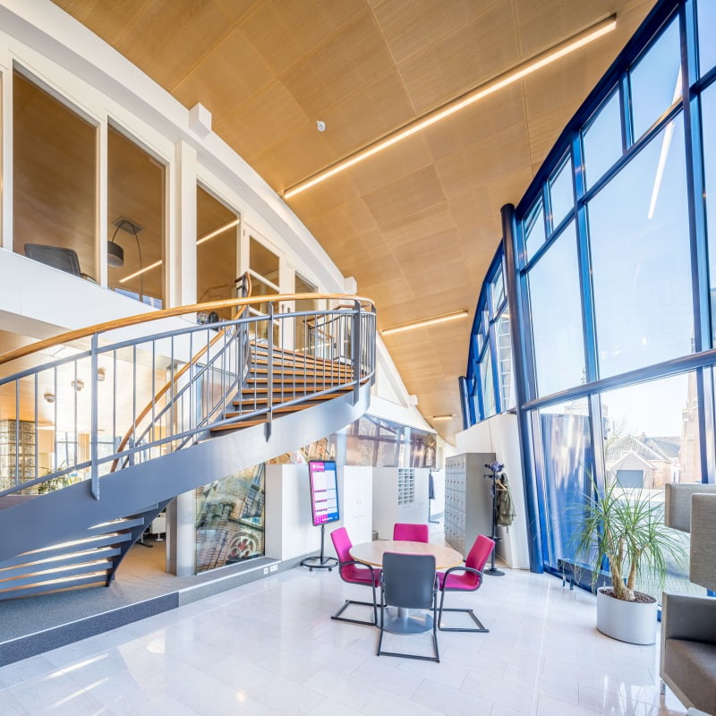Om de verlichting zo efficiënt mogelijk te laten werken, is gekozen voor daglichtregeling. Daarmee past de verlichting zich automatisch aan het natuurlijke licht in de ruimte aan, zodat de verlichting nooit onnodig brandt. Daarnaast zorgen aanwezigheidssensoren ervoor dat de verlichting alleen actief is wanneer een ruimte daadwerkelijk in gebruik is.