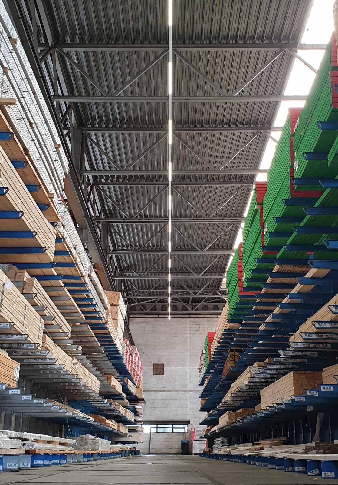 Houtgroep van Drimmelen wilde de oude gasontladingslampen in de bedrijfshal vervangen door duurzame LED verlichting. Het pand wordt deels verhuurd en deels gebruikt als magazijn waar intensief met heftrucks wordt gewerkt. De uitdaging was om een flexibel lichtsysteem te realiseren dat geschikt is voor beide functies én toekomstbestendig is.